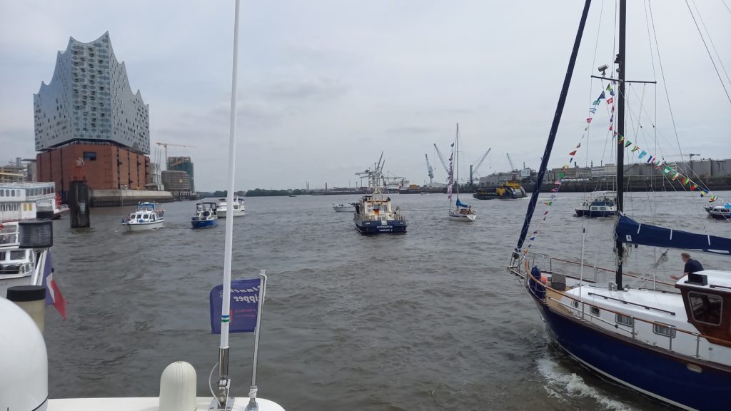 Grund genug, am Freitag dem 20.05.2022, diesem einschneidenden Tag Respekt zu zollen und mit einer Abordnung von Sportbooten die letzte „Dienstfahrt“ auf der „Harbour Master“ der HPA durchs Revier ein Stück des Weges zu begleiten.