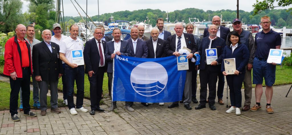 Am 25. Mai 2024 wurde die blaue Flagge an Vereine aus Hamburg und Schleswig-Holstein durch die DGU in Mölln verliehen. Eingeladen hatte Herr Wanierke von der Deutsche Gesellschaft für Umwelterziehung. Die Verleihung der Blauen Flagge fand beim WSV Mölln, der die Blaue Flagge zum 30. Mal bekommen hat, statt. Der 1. Vorsitzenden Björn Wigger hat die geladenen Gäste von Verbänden und Vereinen recht herzlich begrüßt. Als Vertreter der Verbände waren der Hamburger Motorboot-Verband e.V., der Motoryachtverband Schleswig-Holstein, der Seglerverband anwesend, sowie acht Vertreter von Vereinen, die die Urkunden und Blaue Flaggen verliehen bekamen. Nach kurzen Ansprachen der Verbandsvertreter und Herrn Wanierke wurde die Bedeutung der Blauen Flagge noch einmal angesprochen und dann im Anschluss wurden die Urkunden und Blauen Flaggen an die Vertreter der Vereine übergeben. Für Hamburg wurde die Flagge an den ersten Vorsitzenden des City Sporthafen Hamburg e.V., Eduard von Allwörden, übergeben. Herzlichen Glückwunsch