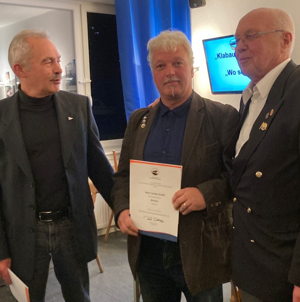 Im Namen des Präsidenten des Deutschen Motoryacht Verband e.V., Frank Dettmering, wird Tobias Schirk, 2.Vorsitzender des Hamburger Motorboot Verband e.V., in Anerkennung der besonderen Verdienste um den Motorbootsport die Verdienstnadel in Bronze verliehen. In der kurzen Laudatio wird das herausragende Engagement in der Hamburger Verbandsarbeit gewürdigt.